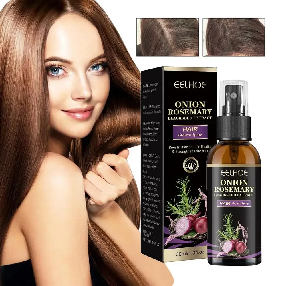 2.Safe Ingredients: Our hair growth spray contains mainly Rosemary extract, onion extract, and blackseed extract to promote healthy hair and scalp development.